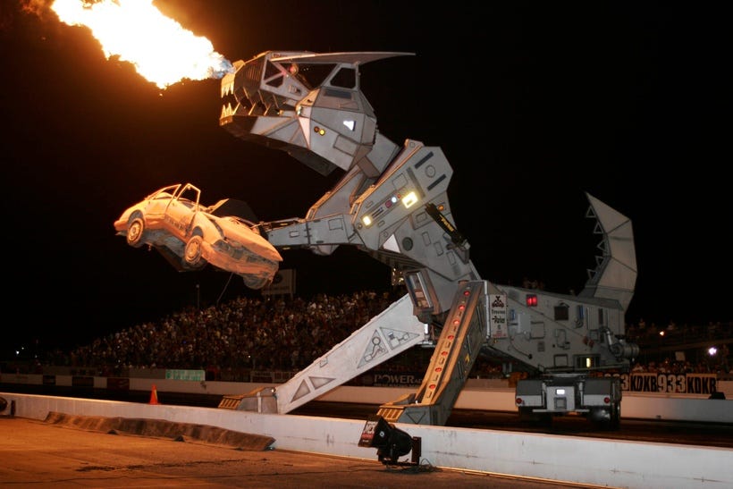 Truckasaurus is based on real-life robot dinosaur "Robosaurus", an attraction created in 1989, to the point where the "Truckasaurus: The Movie" joke from season 4 is mostly likely a reference to "Steel Justice", a failed TV pilot foeaturing Robosaurus footage: