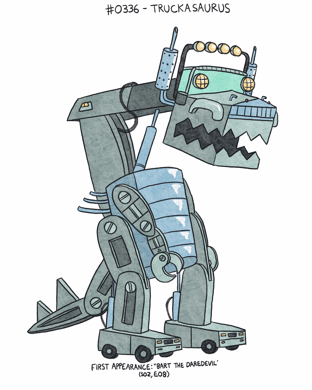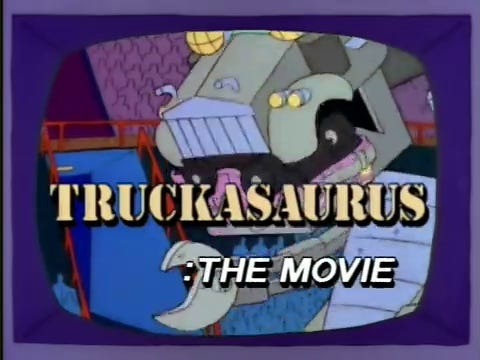 Truckasaurus is the reward at the end of the game if you complete the Gameboy game "The Simpsons: Bart vs. the Juggernauts":